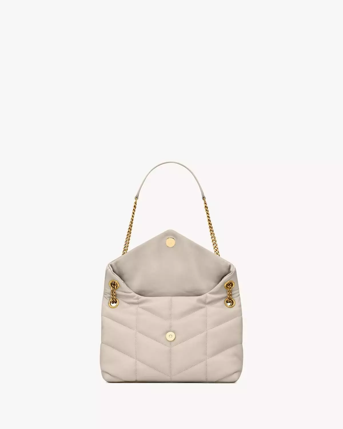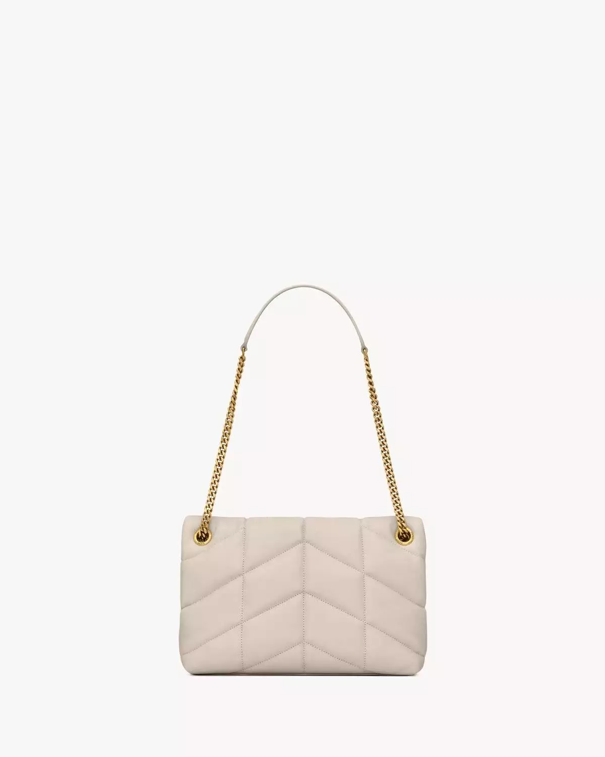 Step into effortless Parisian chic with the Saint Laurent Puffer Small in Nappa Leather – YH004, a modern reinvention of the timeless Loulou bag that blends luxury craftsmanship with bold sophistication.